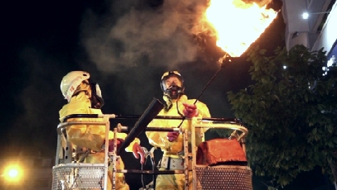 Khói đen cuồn cuộn bốc lên từ tầng dưới, hàng trăm người ở các tầng cao không thể xuống, đứng ở ban công rọi đèn pin, vẫy quần áo... cầu cứu trong hoảng loạn.